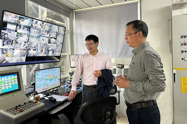 商会副会长黄志勇(右一)参观智能化控制室