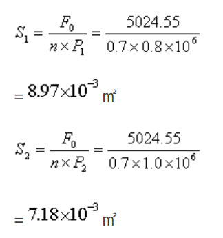 CPG120成品仓的仓门为水平仓门,取n=0.7,系统压力为0.8MPa和1MPa时,分别计算得:
