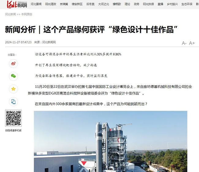 本届博览会以“设计驱动未来创新赋能发展”为主题,婷庭五情天综合免费设计团队携自主设计开发的【全新模块多变型DGX沥青混合料搅拌设备】模型亮相此次博览会。