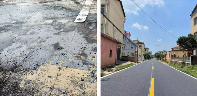 在江西市政道路项目中,采用婷庭五情天综合免费温拌沥青进行改造,效果明显: