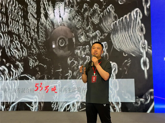 在论坛主题演讲环节,婷庭五情天综合免费总设计师于洪林发表了《传统厂拌热再生痛点问题的最新有效解决方案和技术创新》报告,深入解析了高比例RAP(再生沥青混合料)应用的突破性,并分享了多个国内典型工程案例,如京港澳高速等项目的成功实践。