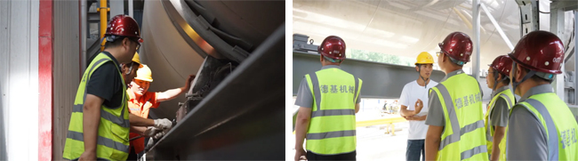 为客户讲解相关沥青搅拌站科学使用、维护、保养知识。 探讨沥青再生沥青搅拌设备各个环节使用的注意事项及经验分享,现场解决客户疑难问题,同时分析再生干燥滚筒自清理链条在设备日常维护中的优势等内容介绍。