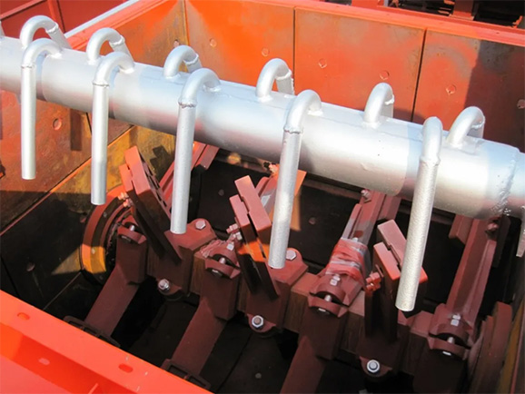 搅拌锅采用双叶片设计,使用高强度特殊材质耐磨钢,使物料轴向流动更快,径向翻腾更剧烈,物料搅拌更加均匀。搅拌锅驱动采用电机减速器直连高速端同步,传动更平稳,传动效率更高。