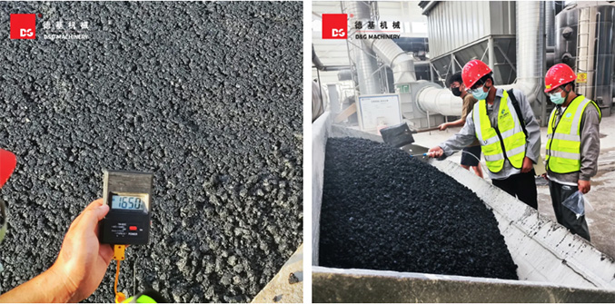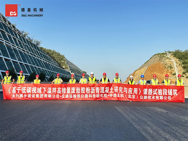 更值得关注的是,该项目实现了基于低碳视域下温拌高掺量废胎胶粉沥青混凝土应用技术。胶粉来自废旧轮胎,其高掺量应用不仅可大幅消耗固废资源,还能有效提升沥青混合料的抗疲劳性、耐高温性和耐久性。然而,胶粉掺量提高通常需要更高的生产温度与工艺控制难度。温拌发泡技术的引入,恰好解决了胶粉高掺量带来的温度矛盾,在降低能耗的同时保障了胶粉沥青混合料施工和易性。