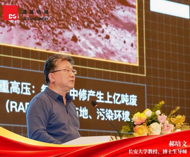 长安大学教授、博士生导师郝培文作了《沥青路面热再生技术》的主题报告,系统阐述了厂拌热再生技术在公路大中修工程中的应用价值,指出其在节约原材料、降低碳排放方面的显著成效,并展望了未来向更高掺量、更低能耗、更智能方向发展的趋势。