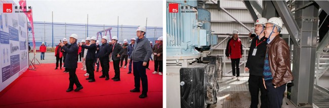 交机仪式结束后,参会嘉宾有序进入生产厂区,对DGXR5000Di再生沥青混合料搅拌设备及其配套的RCS120Gi再生料破碎筛分设备进行实地观摩。从高耸的搅拌主楼到精密的中控室,从流畅的再生料处理线到智能化的控制系统,嘉宾们近距离感受了德基设备在制造工艺、运行稳定性及环保设计上的精工细节。