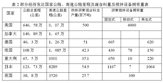 三.经济发达国家公路里程、热拌沥青混合料的总量及沥青混合料搅拌设备的保有量。