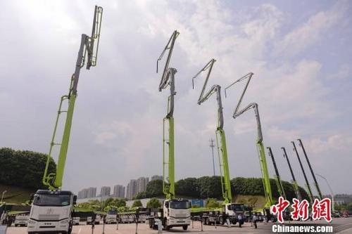 资料图:中联重科研发的56米高精高效泵车。杨华峰 摄