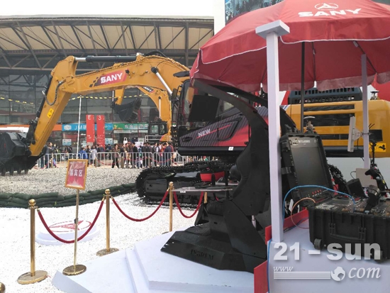 宝马展现场,三一展示可遥控操作的挖掘机。 澎湃新闻 海阳 图